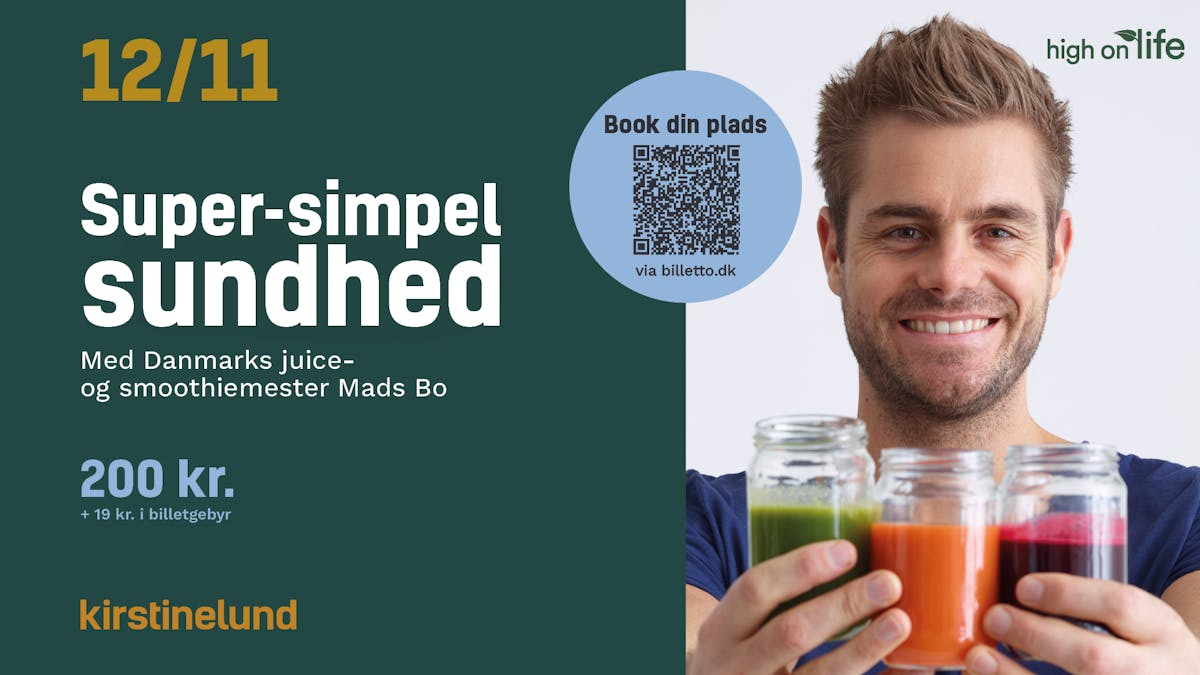 Mads Bo, kendt som Danmarks juice- og smoothiemester, inviterer alle til en inspirerende formiddag på Kirstinelund. Med humor og praktiske sundhedsråd vil Mads Bo guide deltagerne ind i en verden af sundhed og energi.