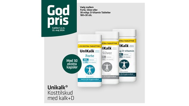 God pris på UniKalk kosttilskud: Få 30 ekstra tabletter ved køb af Forte, Silver eller D-vitamin tabletter