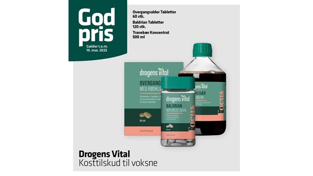 Vejlby Apotek tilbyder ekstra gode priser på udvalgte kosttilskud til voksne fra Drogens Vital, herunder tabletter til overgangsalder og søvn samt tranebær koncentrat. Tilbuddet gælder indtil 19. marts. For mere information kan du læse det oprindelige opslag.