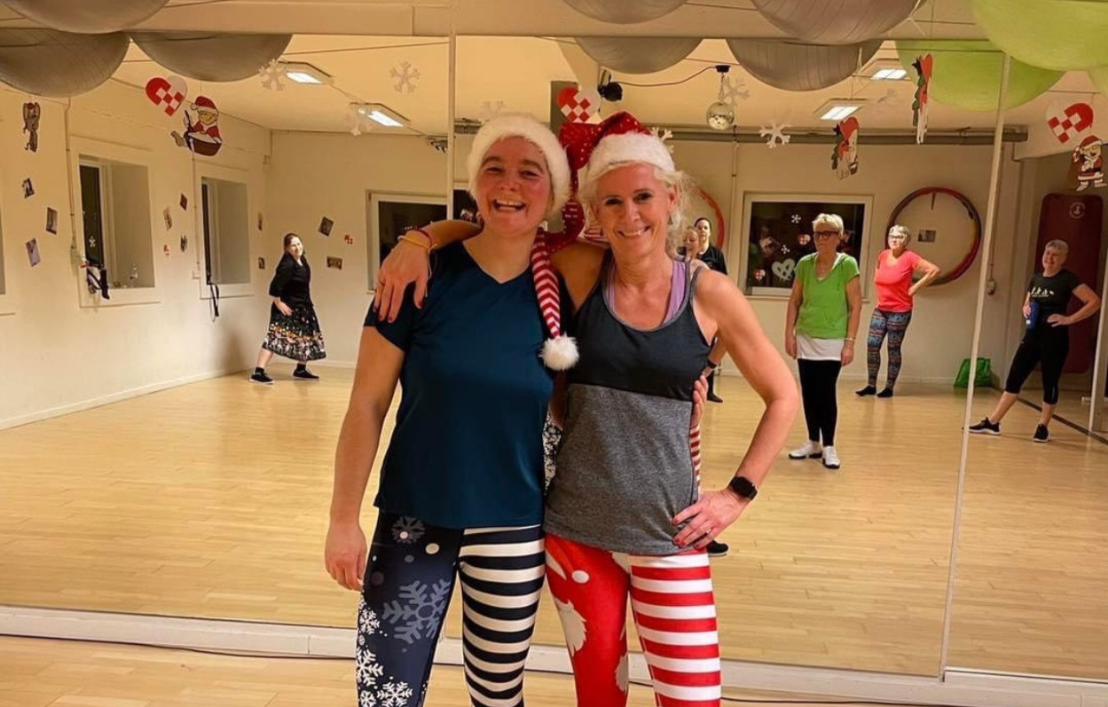 Sæsonafslutning af Ballroom Fitness december 2021, hvor vi selvfølgelig dansede med nisserhuer på (Foto: Privatfoto)