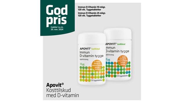 Immun D-vitamin Tyggetabletter indeholder 10mkgr. D-vitamin, der bidrager til immunsystemets normale funktion, og så smager de desuden dejligt af appelsin
